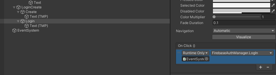 public void LogIn() //로그인 함수 계정 생성과 동일한 코드 복붙, 수정