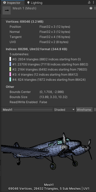 적군 비행기 모델도 Triangles 수가 29432개라서 상당히 높아 보이긴 해서 낮은 모델로 바꾸면 좋을 것 같다.