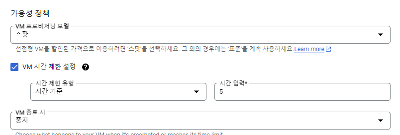 [가용성 정책] - VM 시간 제한 설정 해주고 싶으면 제한하면 된다.