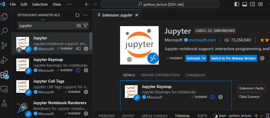 Extensions에서 Jupyter 설치