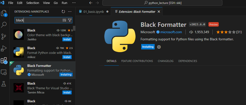 Extensions에서 Black Formatter 설치