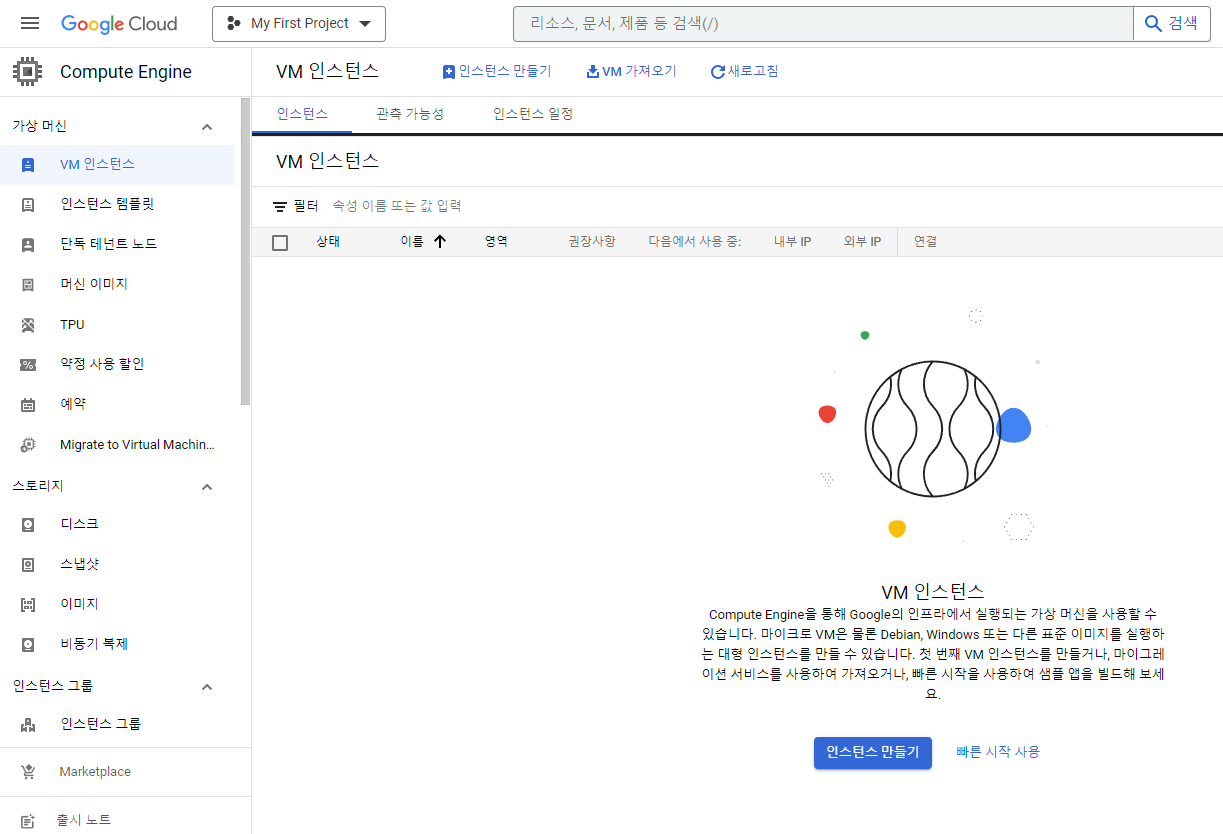 [Compute Engine] - [VM 인스턴스] 클릭