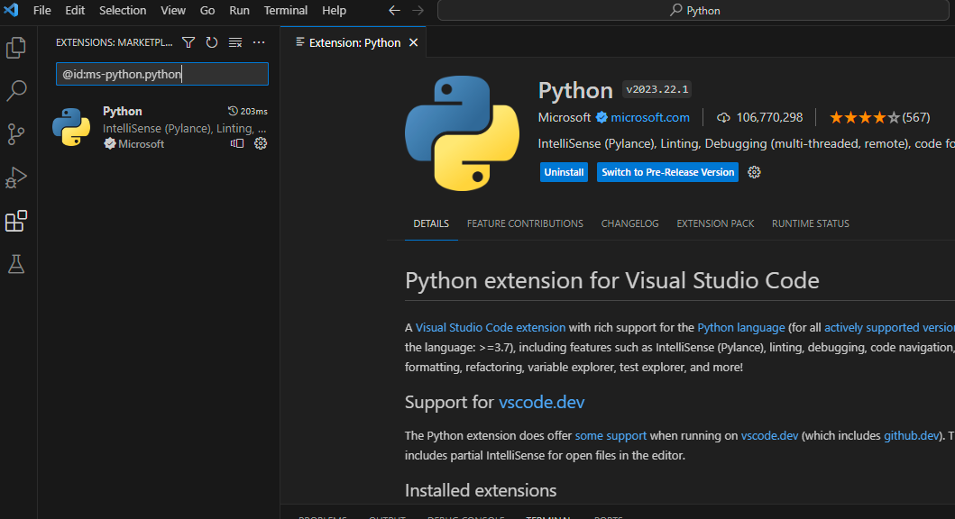 VS Code에서 Extensions에서 Python을 설치한다.