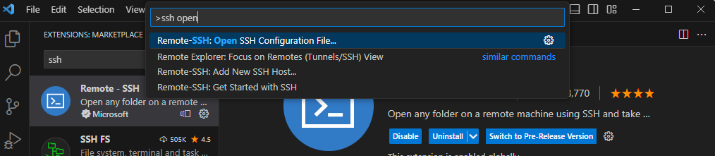 F1 눌러서 검색창, ssh open 검색 후 맨 위 문장 클릭하여 본인 ssh 키가 깔려있는 경로를 들어간다.