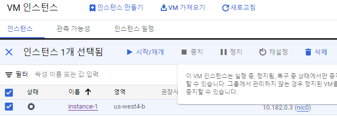 만들기 하면 VM 인스턴스가 만들어진다.