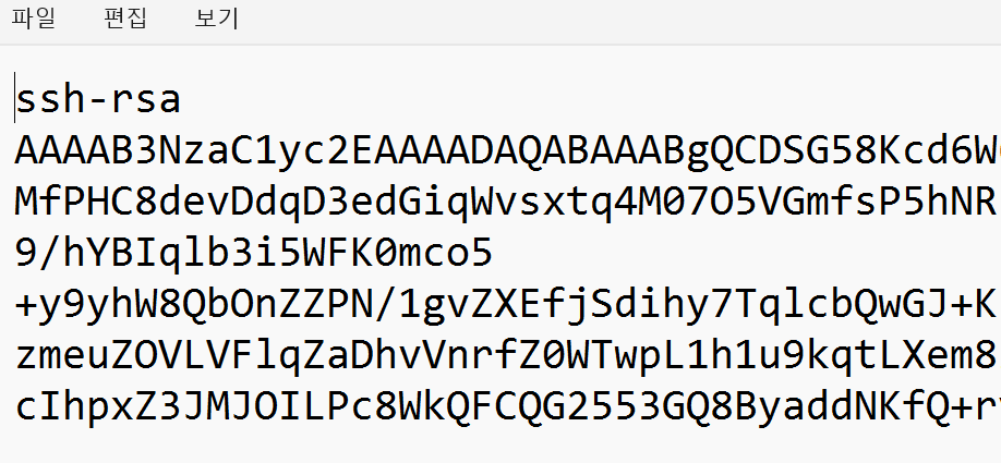 pub 파일을 메모장으로 켜면 키가 나온다.