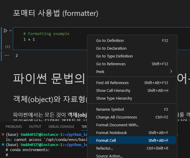 셀에 마우스 오른쪽 버튼을 누르면 Format Cell 기능을 사용할 수 있게 되었다.