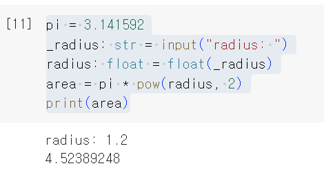 input으로 받는 것은 string 타입으로 받아지기 때문에 형 변환을 위해서 float(_radius)로 썼다.