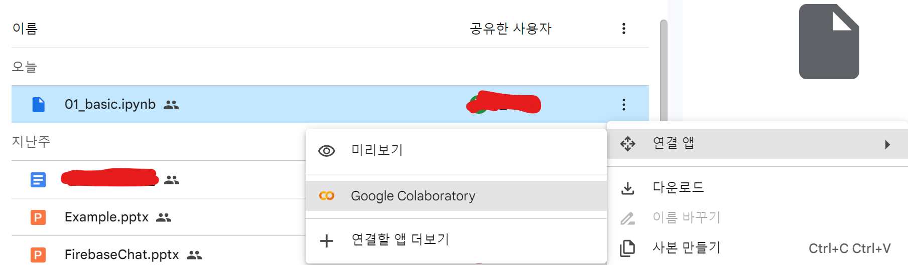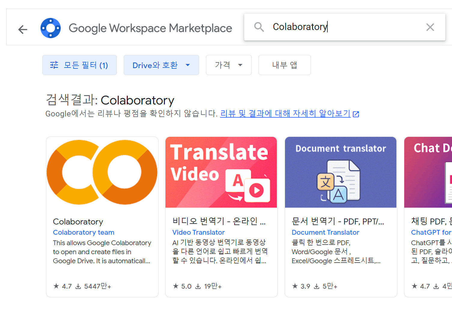 Google Drive에서 .ipynb 파일에 연결 앱 중 Colaboratory를 설치한다.