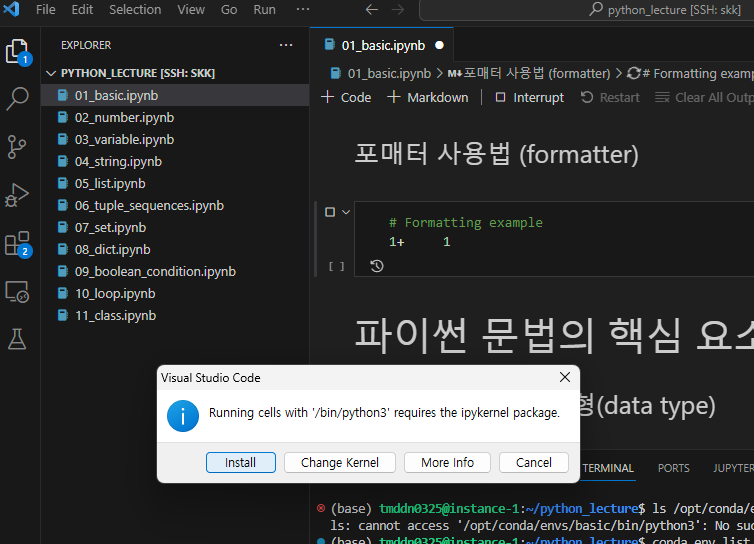 셀을 하나 실행하면 팝업창이 하나 뜨는데 Install 한다.