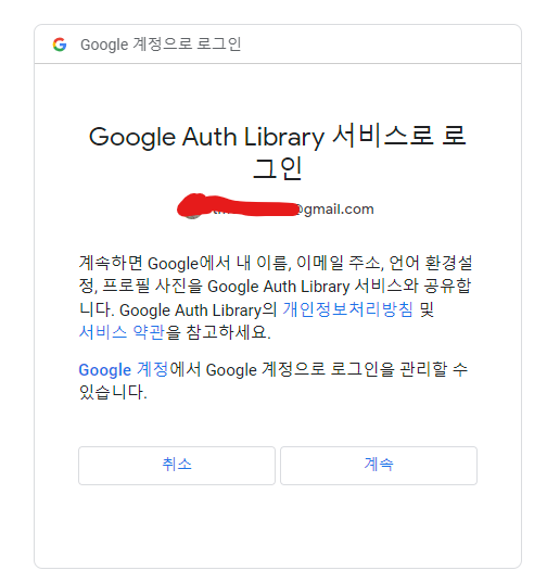Y를 하고 진행하면 링크가 나오며 계속, 승인을 눌러 키를 받는다.