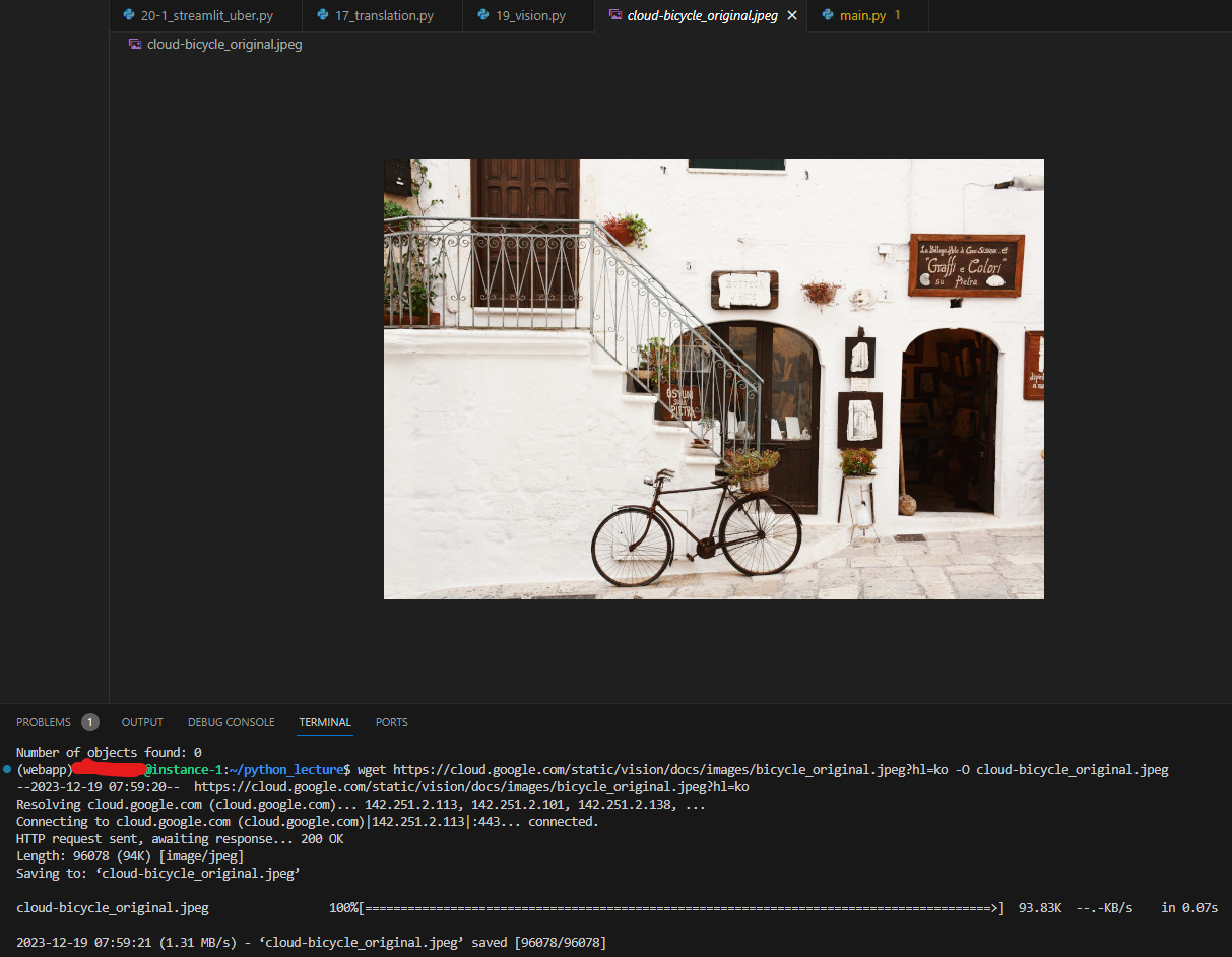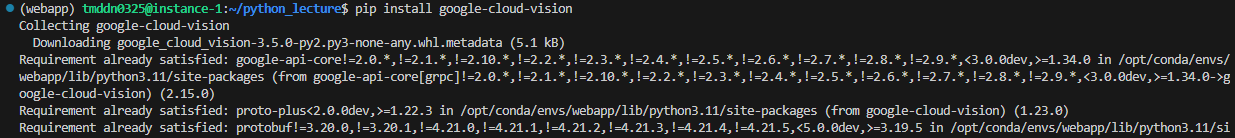 터미널에서 pip install google-cloud-vision 인스톨