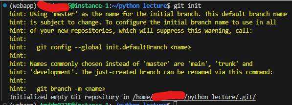 터미널에서 git init으로 깃 파일 생성