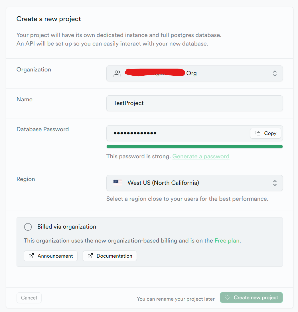 Supabase에 Github 계정으로 가입한다.