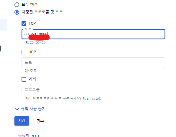 port 8000번을 통해 배포하므로 해당 포트를 열어야 한다.