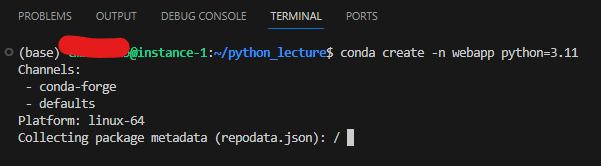 터미널에서 콘다로 만들기