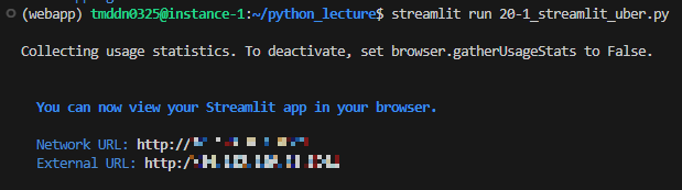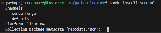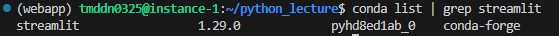 conda list | grep streamlit을 치면 설치가 된 것을 볼 수 있다.