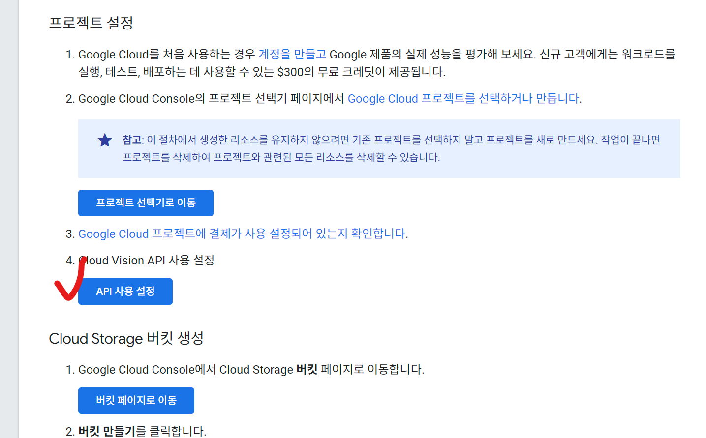 아래의 링크에서 API를 사용으로 설정한다.