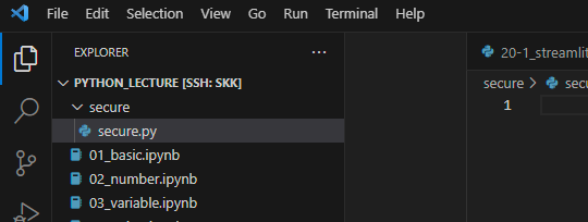 secure 폴더를 하나 만들고 secure.py 파일 생성