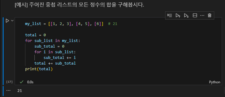 예제 -주어진 중첩 리스트의 모든 정수의 합 구하기