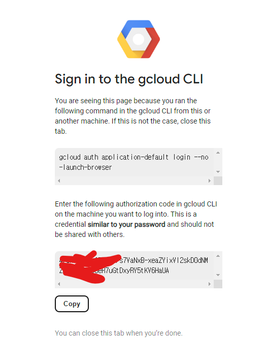 받은 키를 Enter authorization code에 넣고 엔터