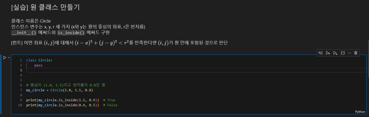 print(my_circle.is_inside(1.5, 0.9)) # True