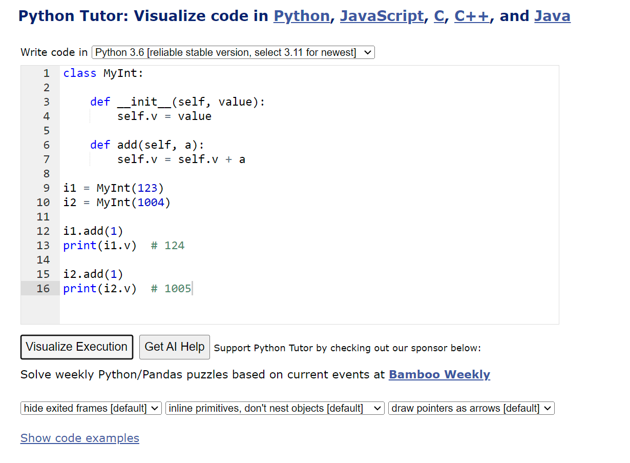 Python Tutor code visualizer: Visualize code in Python, JavaScript, C, C++, and Java