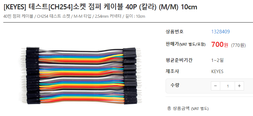 아마존 링크는 28AWG 이지만 디바이스 마트에는 22AWG 만한 10색 절연 전선이 있다. 짧은 거리라 가능할 것으로 보인다.(불 나면 큰일임)