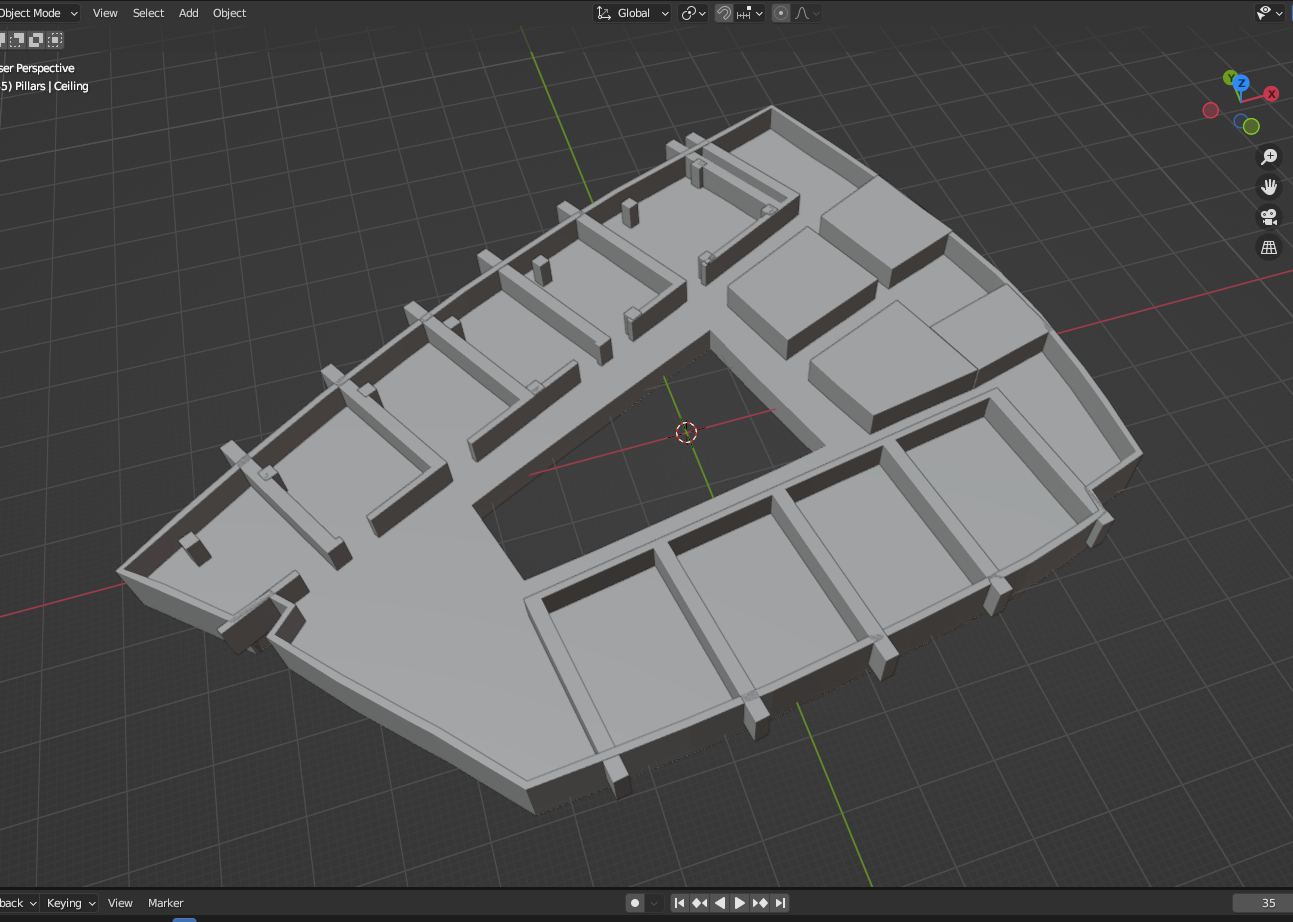 교실과 공간을 모델링 하였다. (바닥, 벽, 기둥, 큐브로 화장실, 휴게실, 엘레베이터 표현)