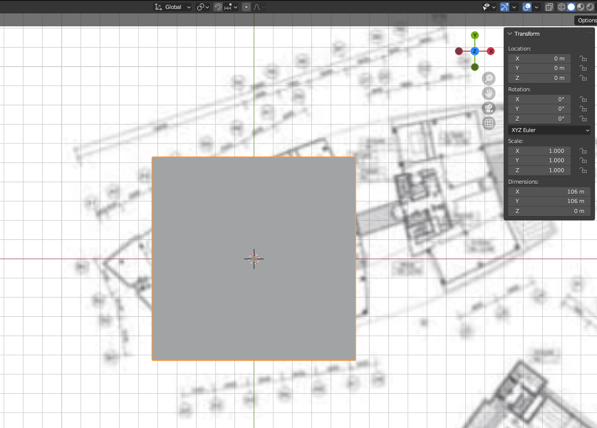 블렌더에서 Background Image로 경기 스타트업 캠퍼스 7층 평면도를 배치하고 그 위에 Plane으로 모양을 잡아서 늘리는 작업을 진행하려 한다.