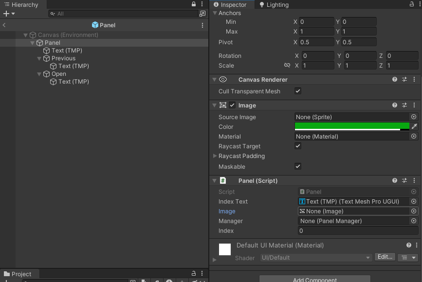 패널 프리팹을 보면 Image가 비어있는 것을 볼 수 있다.