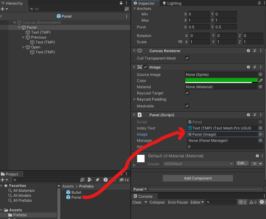 Panel 프리팹을 Image에 드래그앤 드랍 한다.
