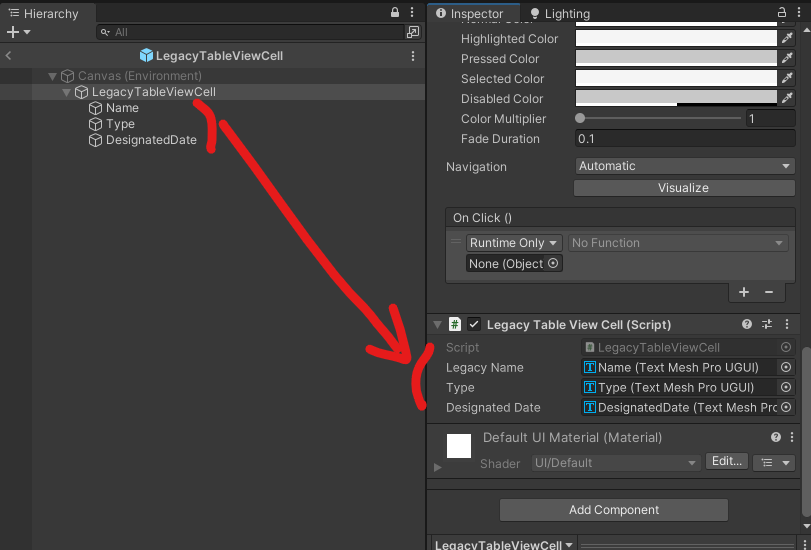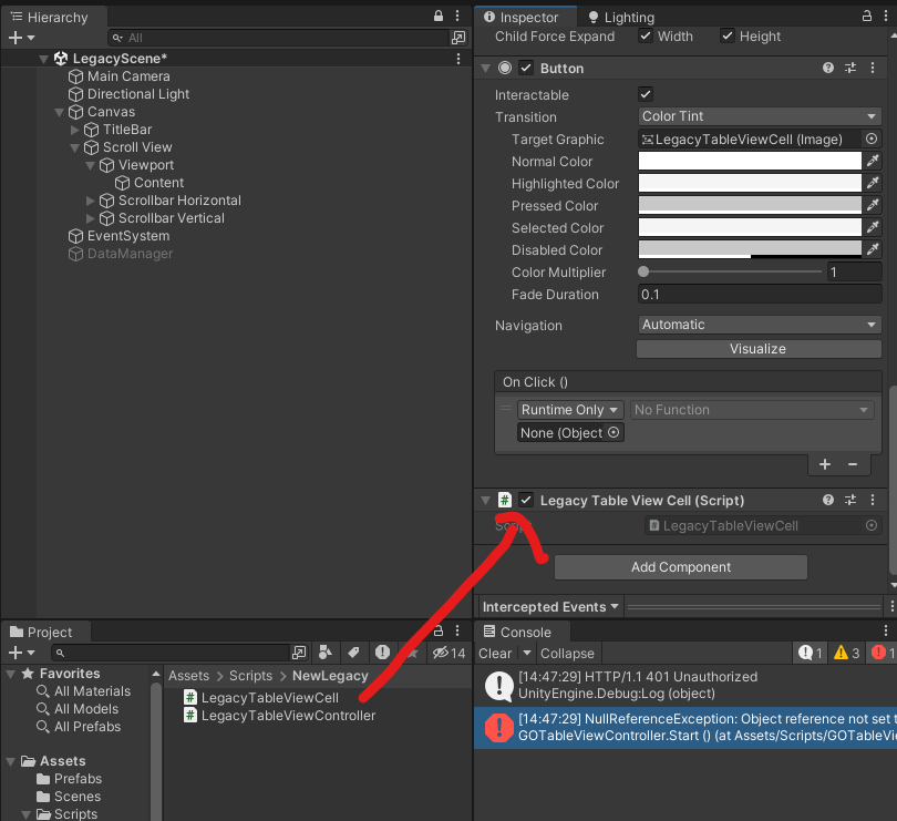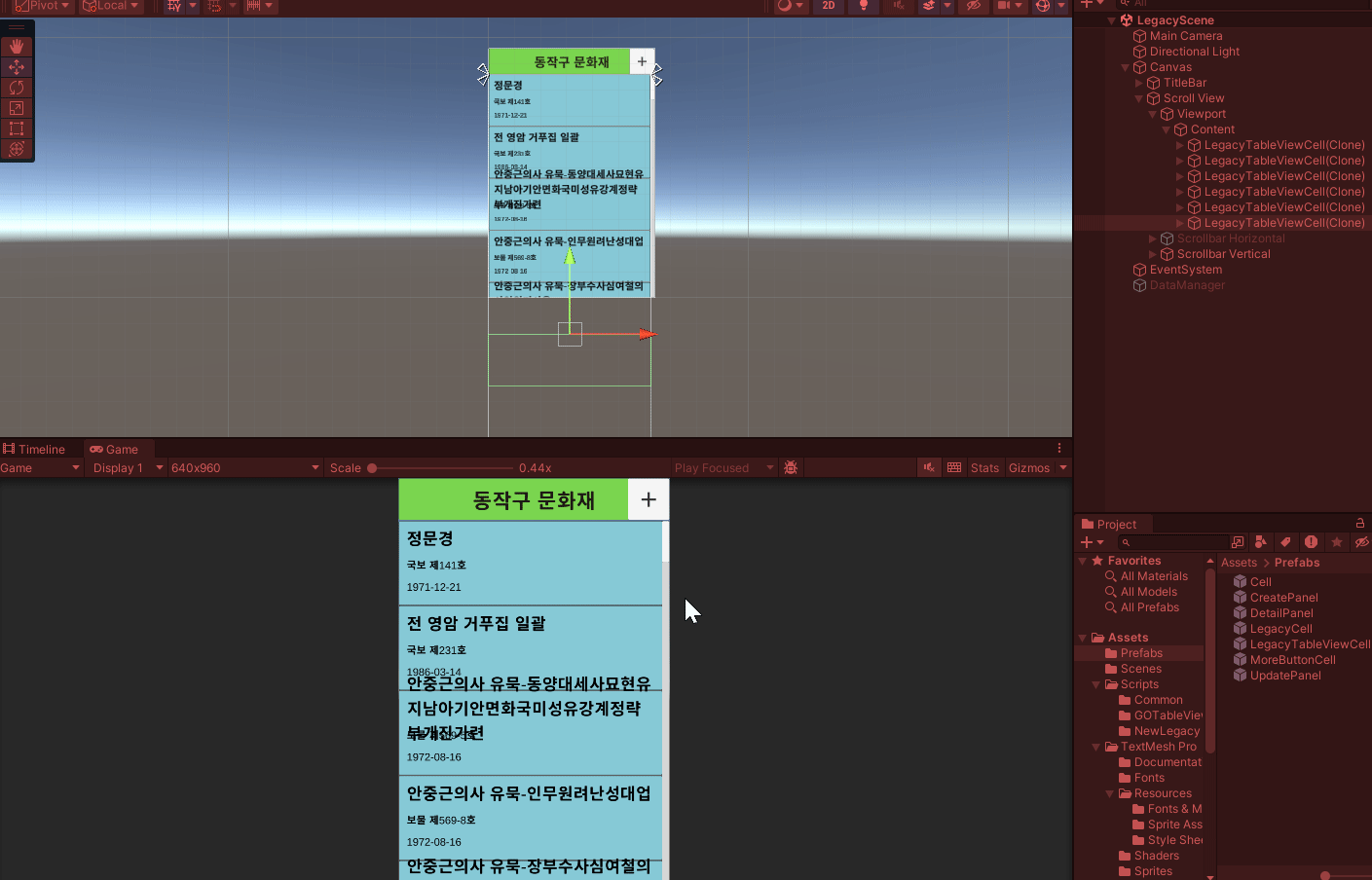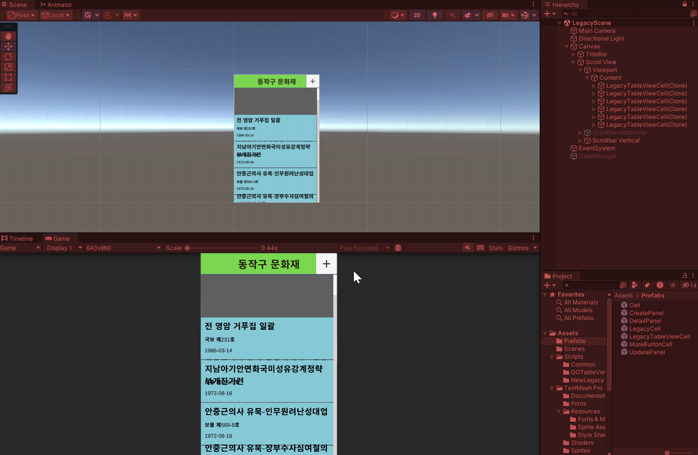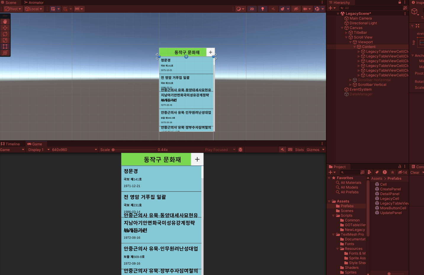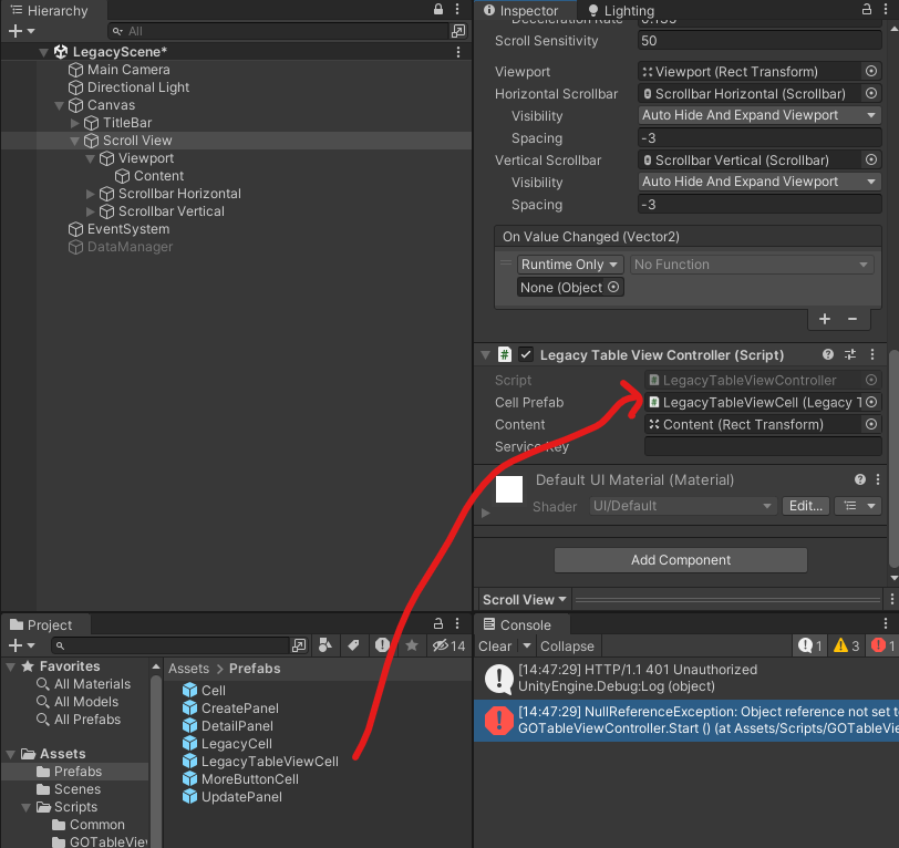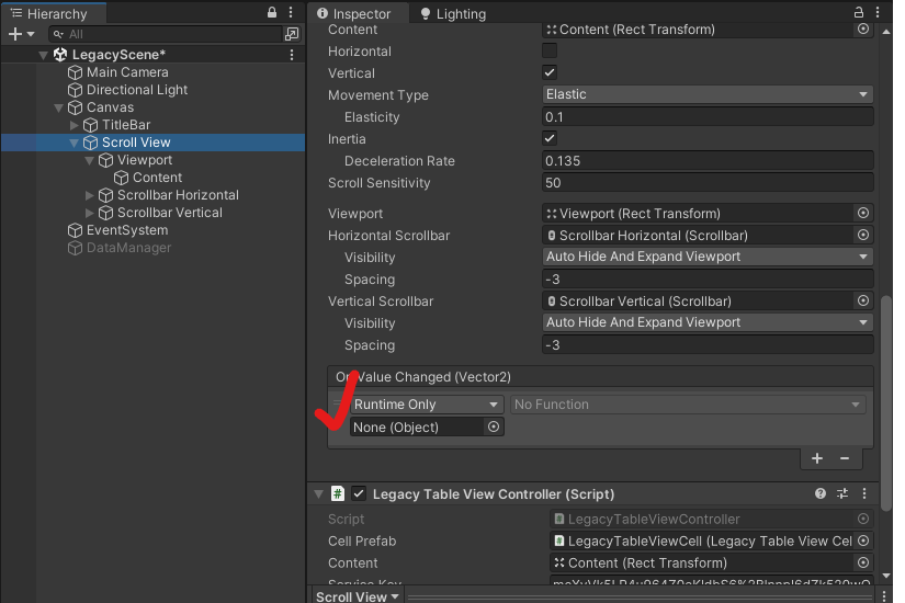 CellPrefab 자리에 LegacyTableViewCell 끌어다 넣기