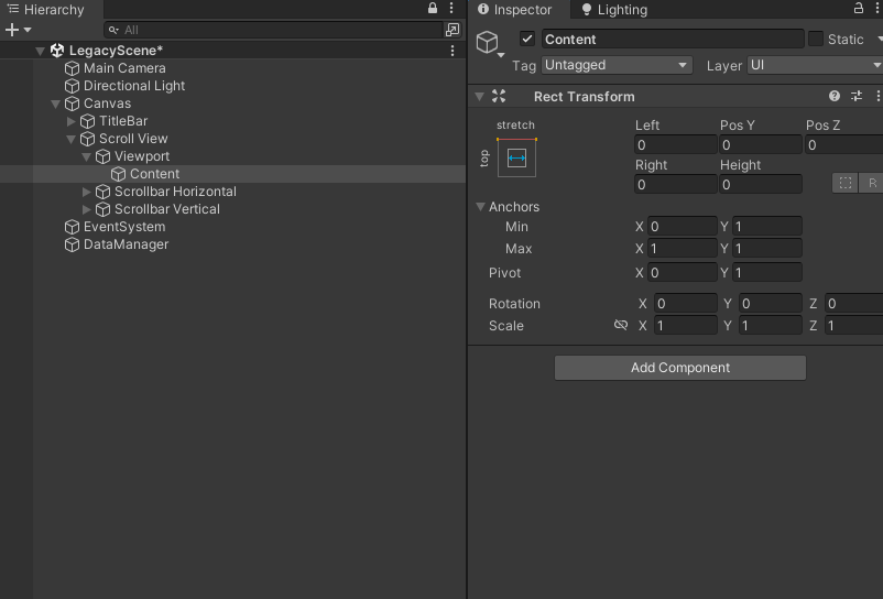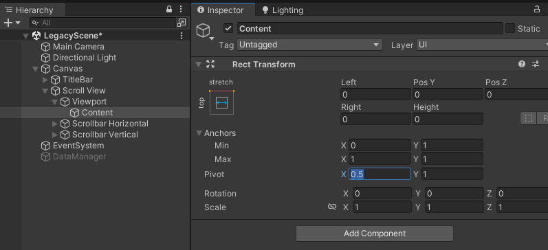 Content에 Vertical Layout Group과 Content Size Fitter 지우기. 스크립트로 조절할 예정