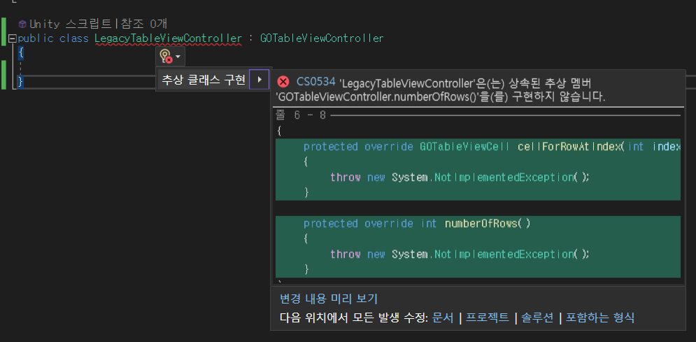 GOTableViewController 스크립트를 상속받는 자식 클래스 LegacyTableViewController 스크립트 생성