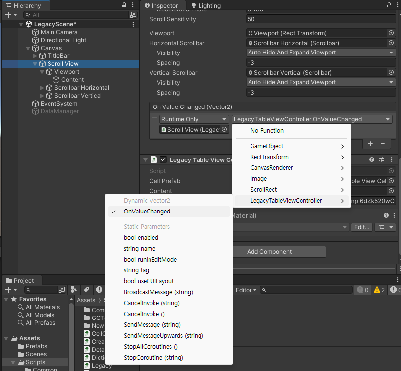 LegacyTableViewController 스크립트에 한 줄 추가