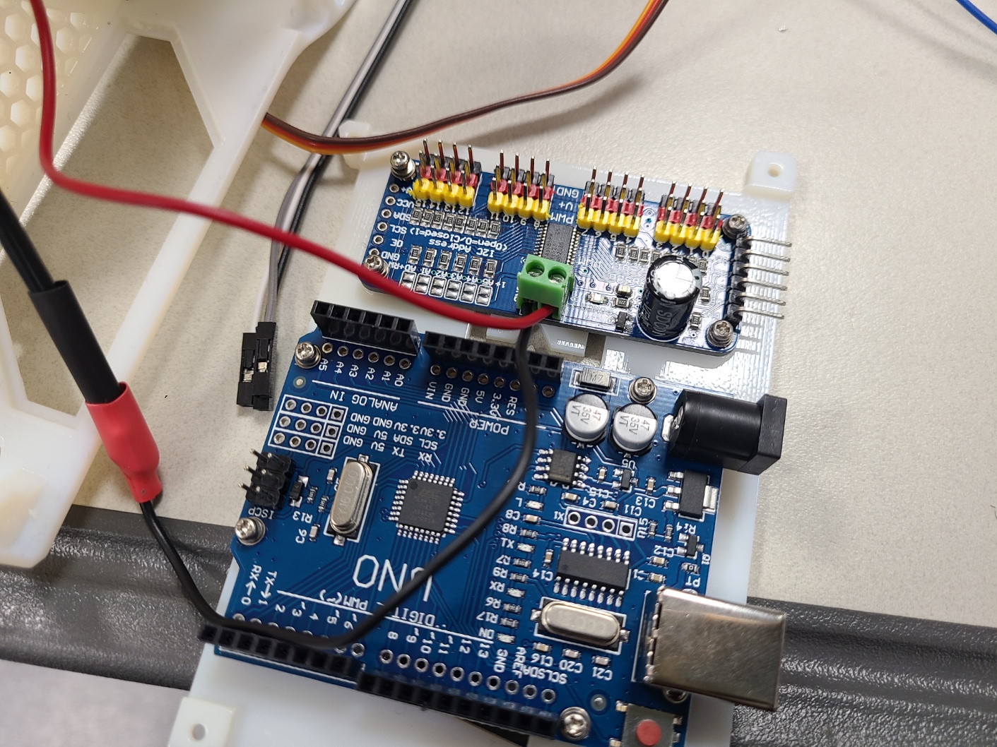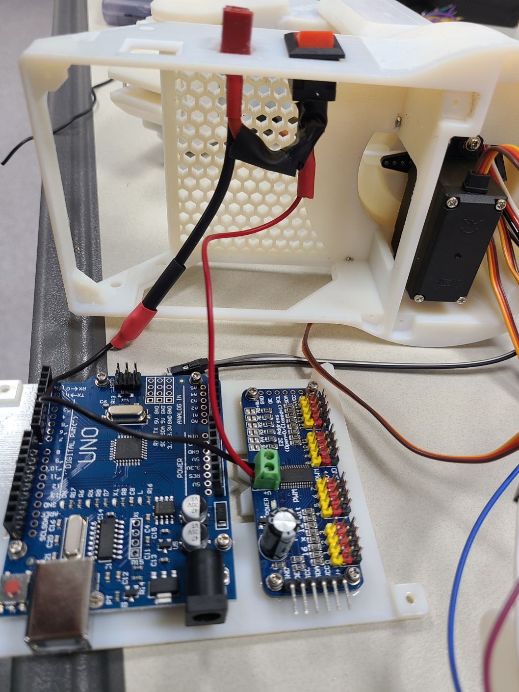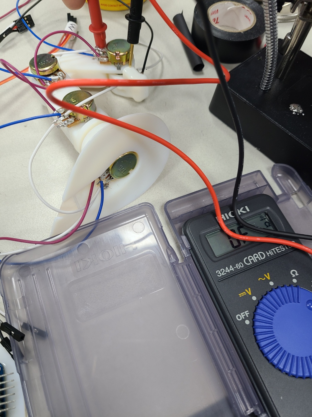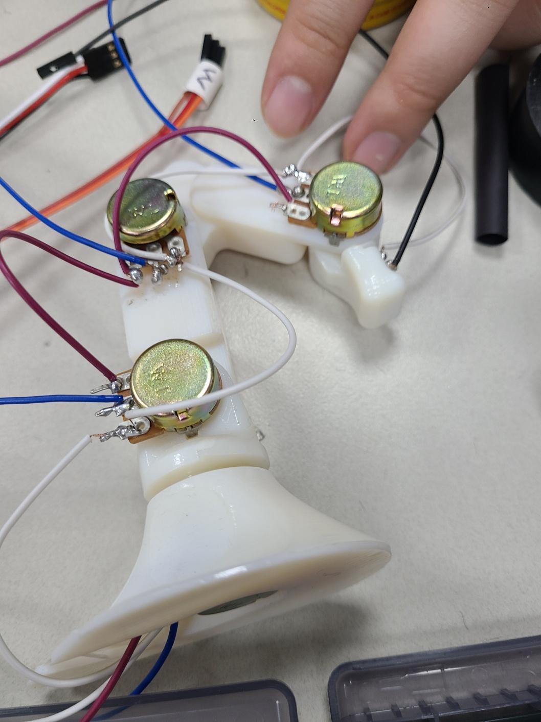 큰 로봇을 컨트롤 할 작은 컨트롤 로봇도 만들었다. 각 관절마다 potentialmeter를 가지고 모터가 돌아가는 정도를 조절할 예정이다. 각 연결점 마다 전선을 놓고 납땜도 했다.