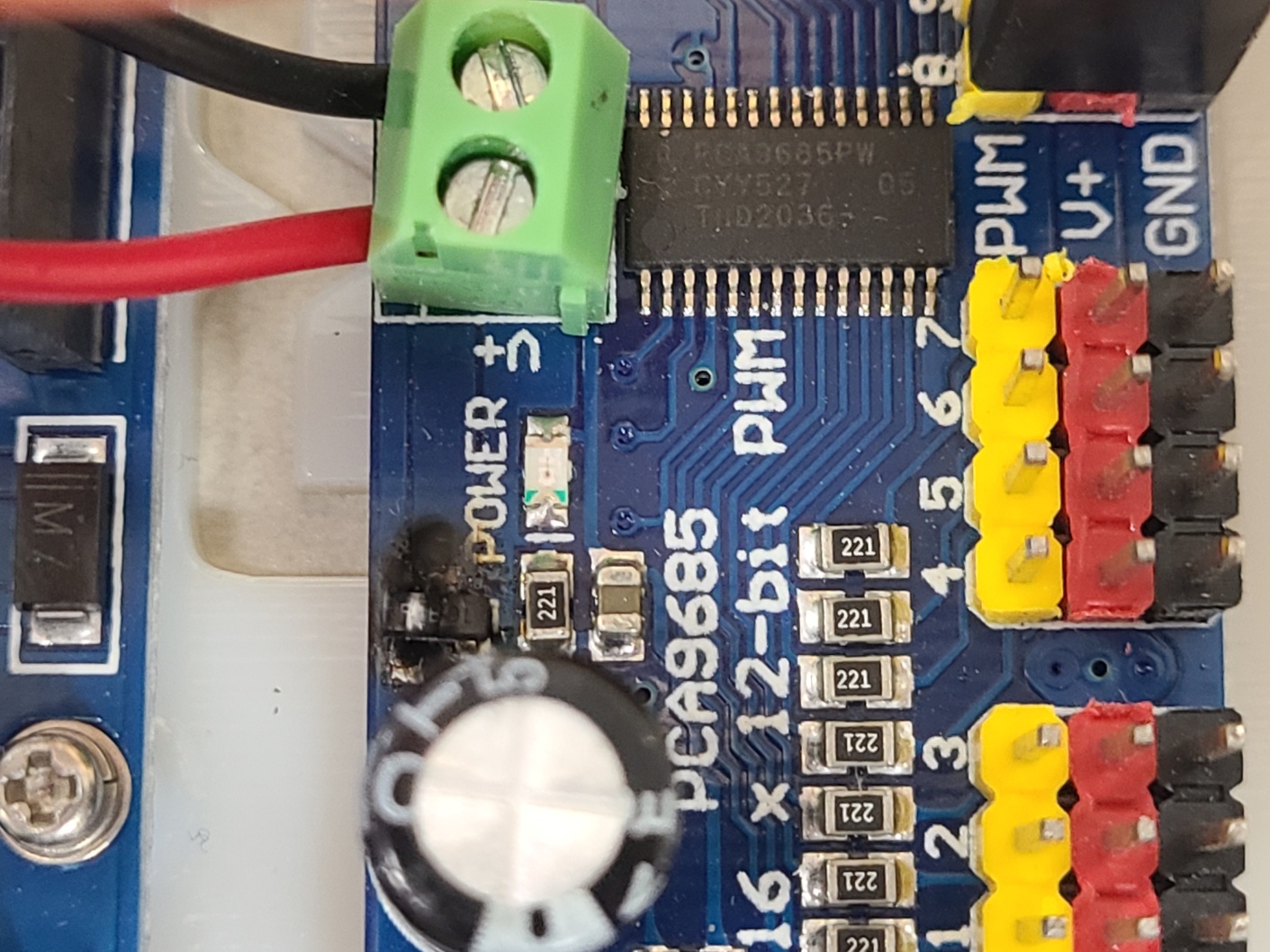 자세히 보면 POWER의 전원이 들어오는 부분 옆이 까맣게 탄 것을 볼 수 있다... 코드의 수정 + 포텐셜미터 부분 합선 문제인 것 같고 서보모터 드라이브는 다시 사서 테스트 해야할 것 같다.