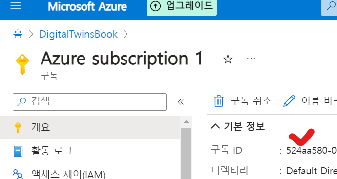 Azure Portal에서 아래의 경로로 들어간 후 구독 ID를 복사해서 Postman에 붙여넣는다.
