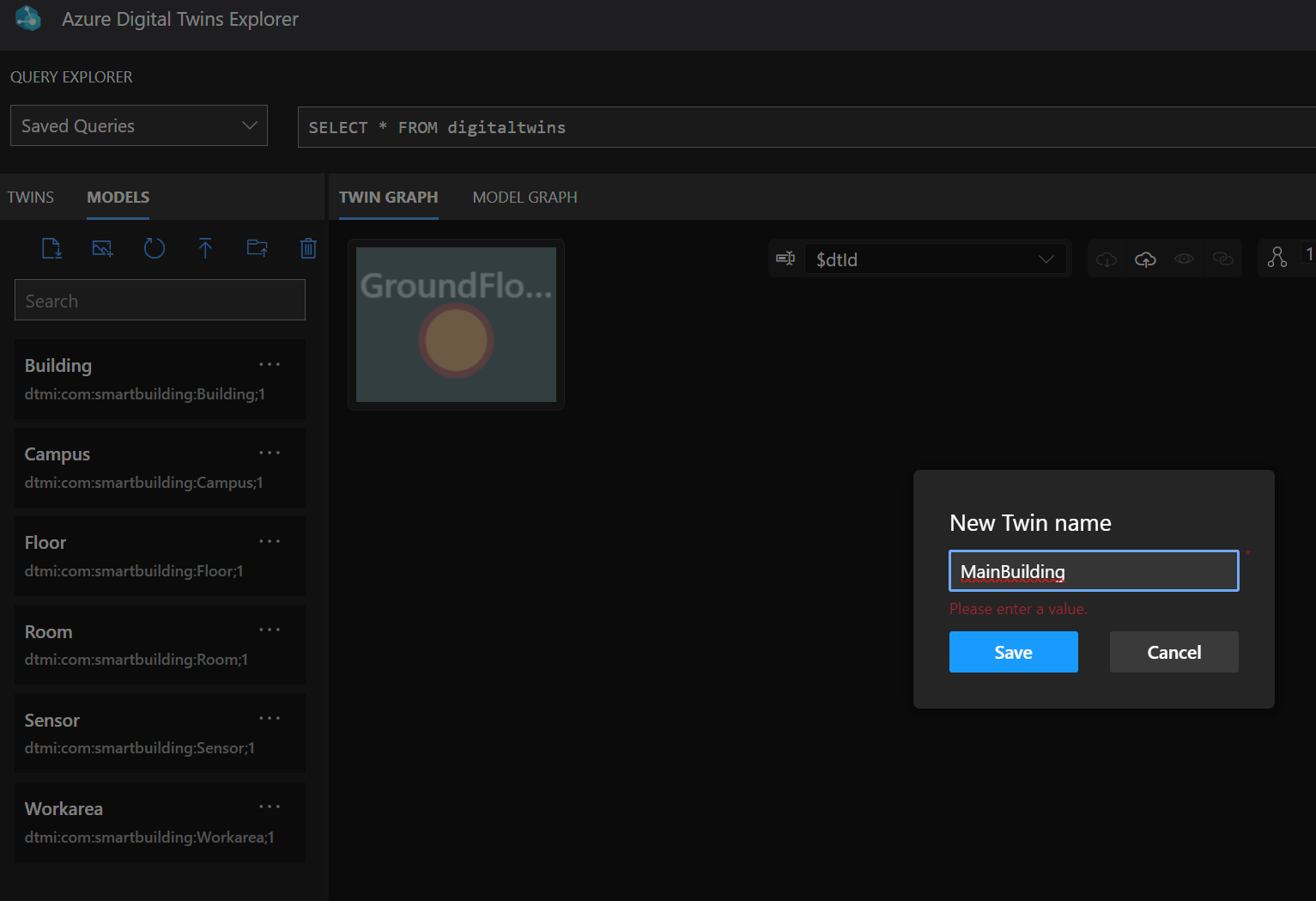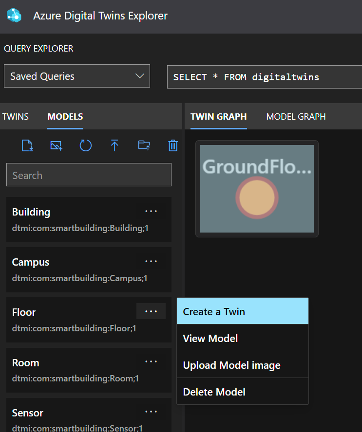 그리고 Building 모델에 [Create a Twin]으로 MainBuilding이름의 Twin 생성