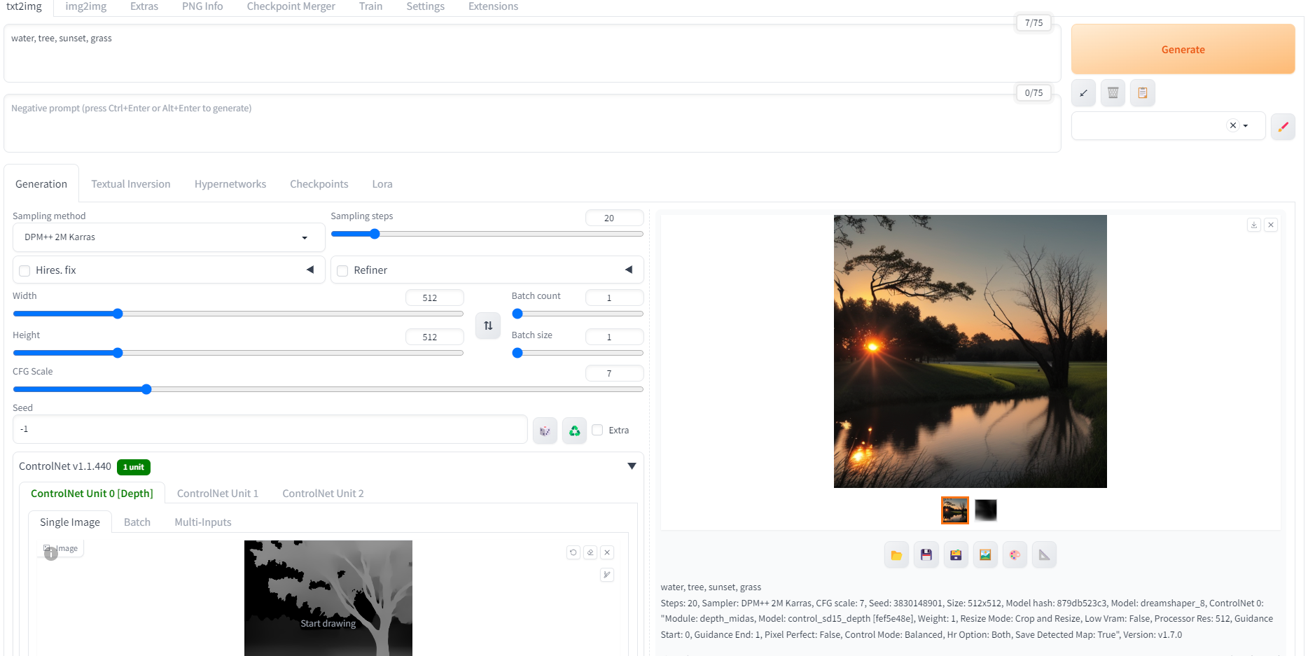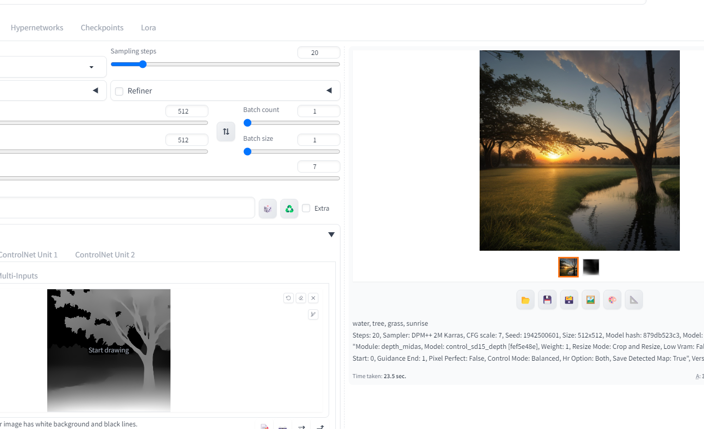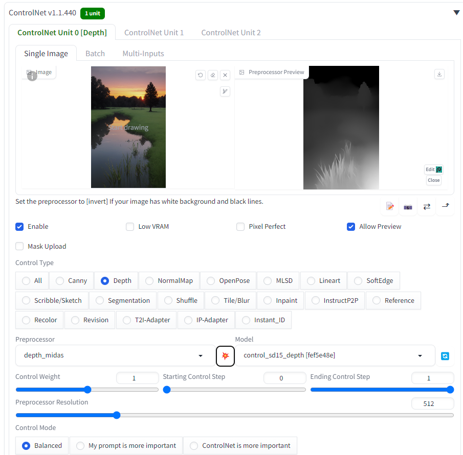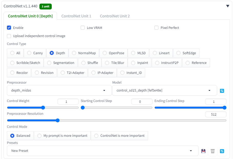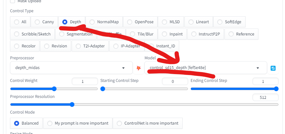 잘 인식 되었다면 Depth를 눌렀을 때 control_sd15_depth 모델이 뜬다.