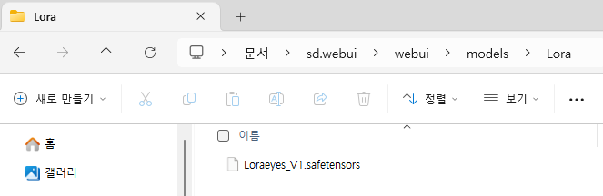 다운 받아진 모델을 Stable Diffusion이 설치된 아래의 경로로 넣는다.