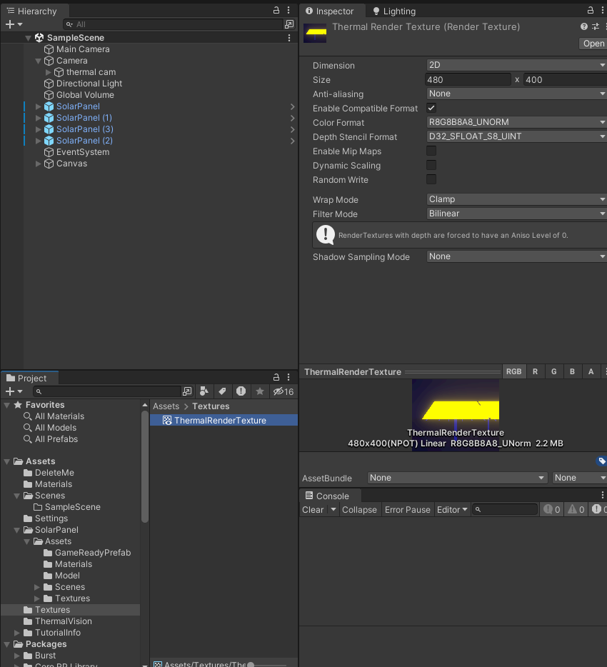 열화상 카메라를 미니맵처럼 화면에 작게 띄우기 위해서 Project 창에 RenderTexture를 하나 만든다.