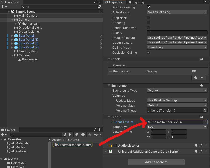 Camera에도 Output Texture 자리에 RenderTexture를 넣는다.