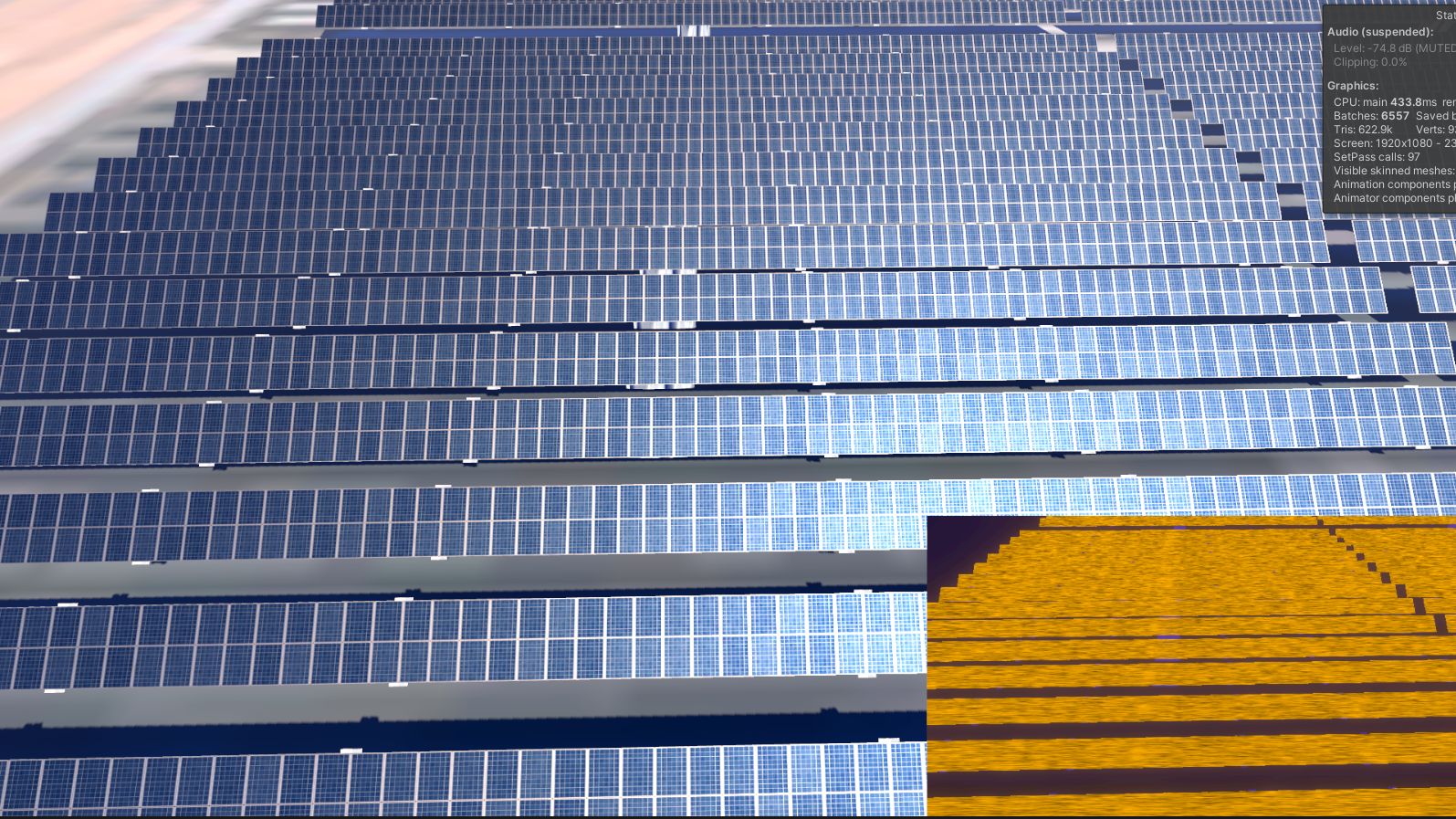 D 구역의 일부만 패널을 깔아본 결과 총 Tris 수는 대략 20만, 한 구역에 네 부분씩 총 열여섯 부분이 있다고 생각하면 320만 Tris 수가 나온다. 320만 폴리면 과거의 프로젝트를 생각했을 때, 그래도 유니티 상에서는 충분히 돌아갈만 하다고 생각한다.(회사에서 프로젝트를 진행할 때는 5000만~8000만일 때 프레임이 정말 안나왔다.)
