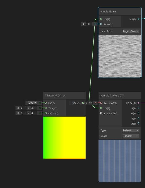 [Tiling And Offset] 노드는 [Sample Texture 2D] 노드 전에 놓고 UV에 연결하면 되는 것이었다!