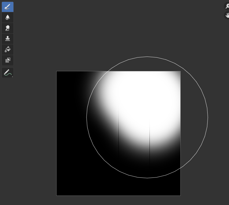 Texture Paint 탭 클릭, 오른쪽에서 방금 만든 메테리얼 선택