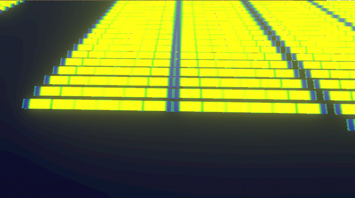 원래 태양광 패널의 Panel 메테리얼에 쓰는 텍스쳐를 가져왔고 [Invert Colors] 노드로 반전을 줘서 파란 패널 부분은 밝게, 패널 사이의 밝았던 공간은 어둡게 바꿨다. 그리고 [Contrast] 노드로 밝은 부분은 더 밝게, 어두운 부분은 더 어둡게 강조해서 대비가 명확하게 만들었다. 이 결과물을 기존에 있던 것과 [Multiply]하면 그래도 나름 내가 원하는 모습이 되긴 했다!