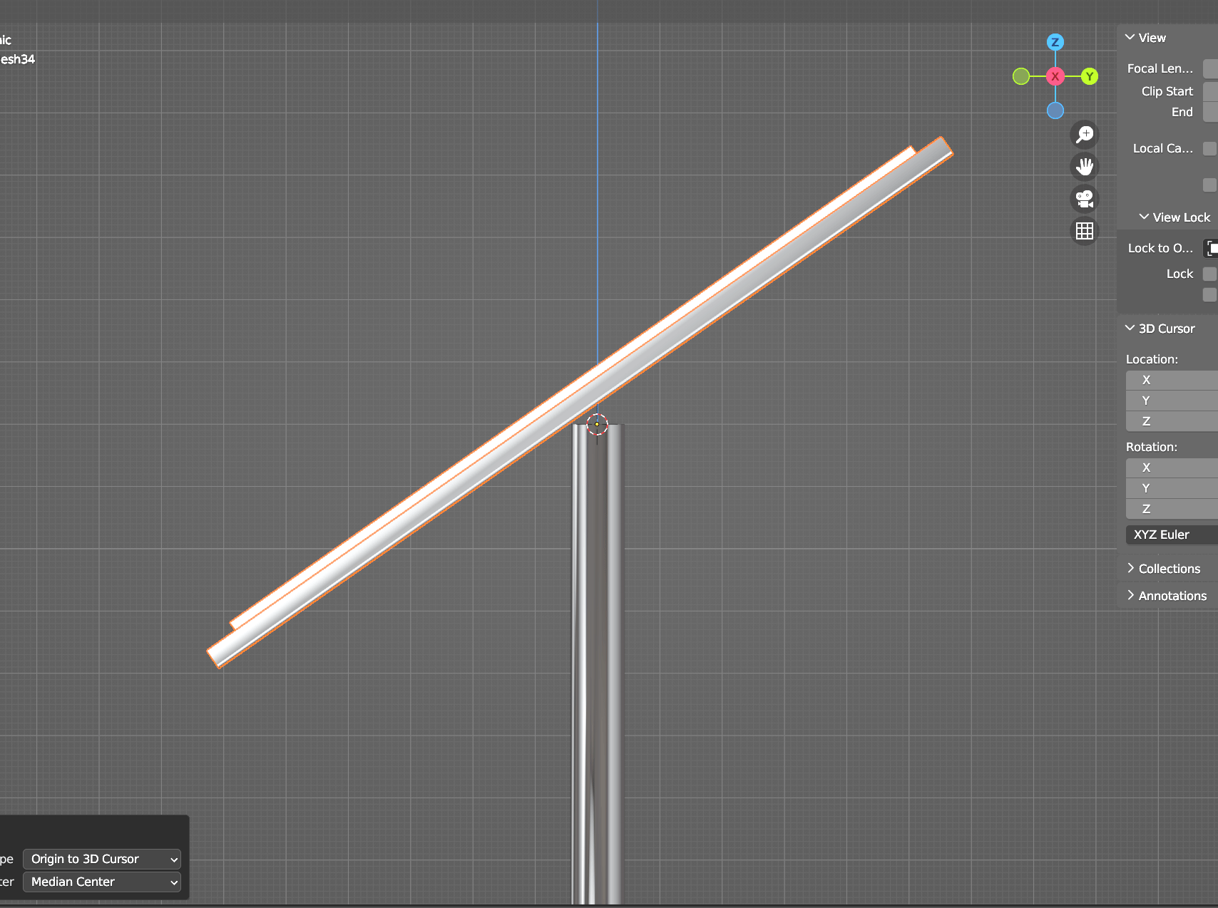 현재 상태로 패널을 회전하면 원하는대로 회전축이 설정되어있지 않아서 피봇을 수정해야 한다. 원래는 기둥의 밑바닥에 피봇이 있어서 올려줄 것이다. 블렌더에서 간단하게 수정할 수 있다.