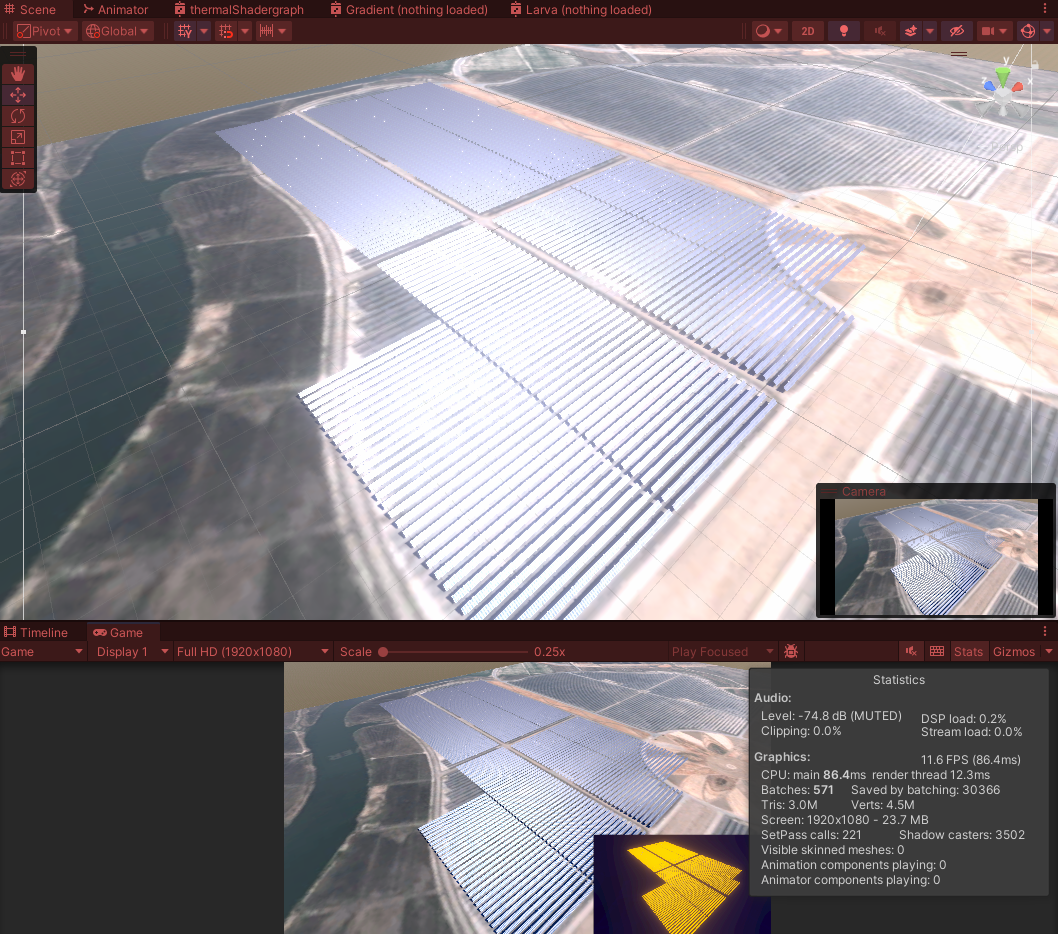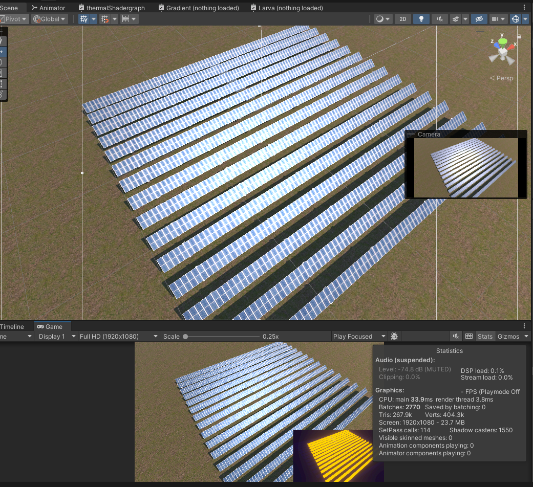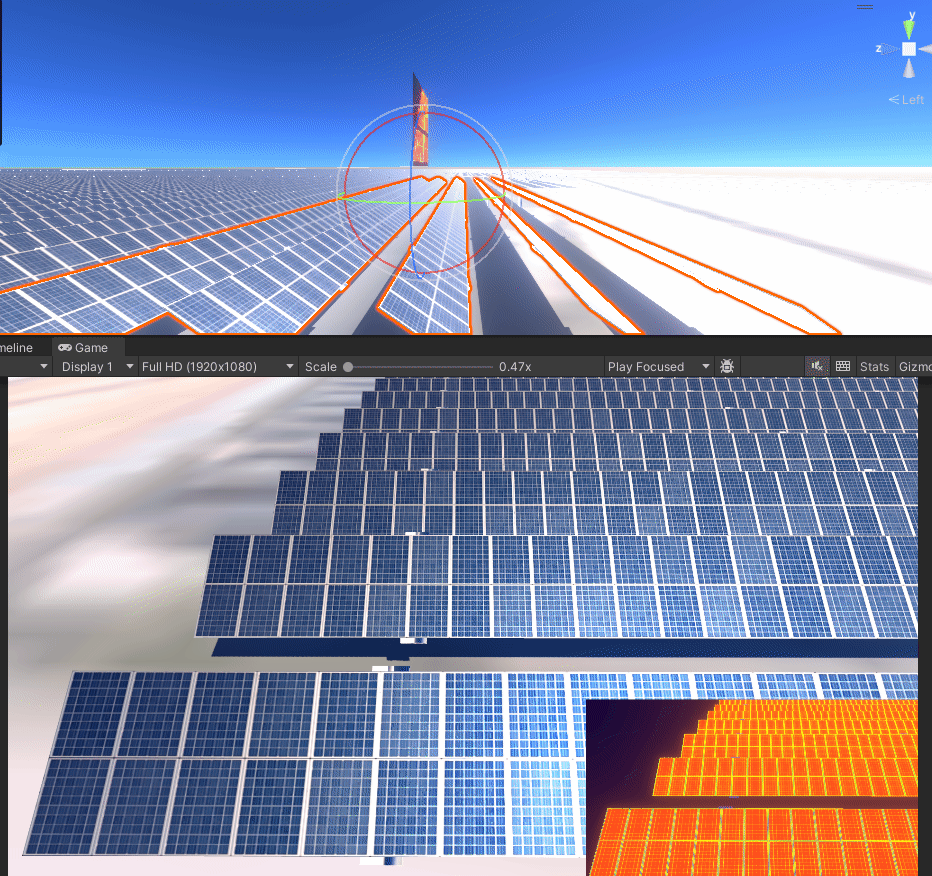 유니티에서도 잘 적용 되었다. 근데 높이 조정하고 하다보니 thermal 메테리얼을 다시 갈아야 될듯 하다. 프리팹은 본 씬에서 다시 깔면 되기 때문에 태양광 패널 세팅은 이렇게 마무리 해도 될 것 같다.